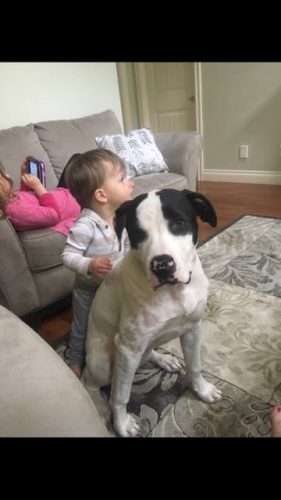 He would do best in a a bully savy, active home where he will get lots of attention and someone who can work on his training. We think he’s a Pitt Bull / Boxer X