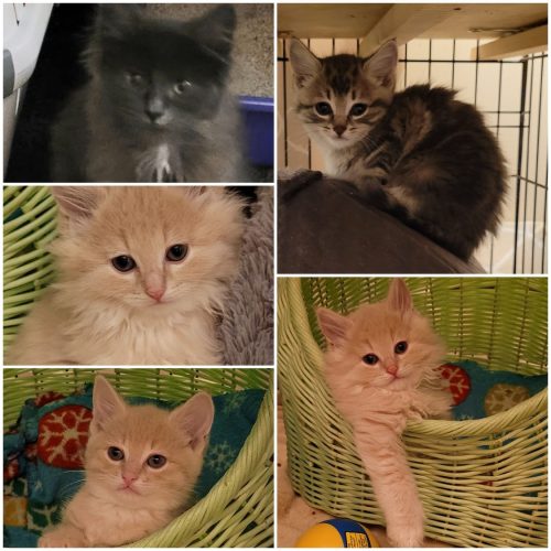 Gary, Wesley, Cliff and Scarlet came to us after we took in a pregnant feral cat. She had her babies in our care where she was fed good food, warm and cared for. Once these cuties were eating food on their own we took them away from mom so we could handle them a lot and they can learn to trust humans. They are doing amazing ! they are a bit shy to start of new people but once they know you are cuddly playful bundles of fun ! They were born Sept 17 2021. They would LOVE a home with one of buddies or at least go to a home with another playful young cat.