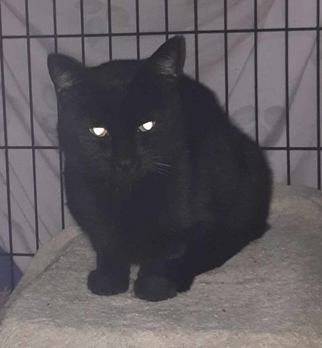 This beautiful little house panther has taken a bit of time to come out of his shell. He arrived to us scared and unsure of what us humans were going to do with him. After several weeks, Nimbus has blossomed into a very loving young cat. He will greet me with meows and head rubs. He was born approx. Nov 2022 and has had all his vetting done and is ready to find a human(s) of his own. As with most cats he may take a bit to get used to you, but once he does, all the head butts and welcome home Meows will be yours. Sometimes he forgets that people are not going to hurt him and might nip, he never does this out of meanness, but for this reason young children are not recommended for this boy. The other cats in the room do not seem to bother him, however, introductions to other cats should be slow, not sure how he would be around dogs